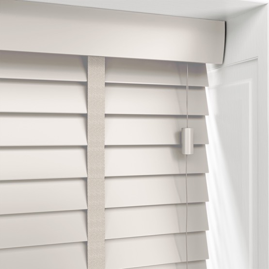 Whether you’re aiming for a clean and contemporary look or adding a sophisticated layer to a more traditional room, our Moonstone Venetian Blind with Tapes delivers both style and substance. With its elegant 50mm slats and beautifully coordinated taped ladder cords, it’s a refined upgrade. Elevate your interior with our Venetian Faux Wood collection — where sophistication meets modern allure.